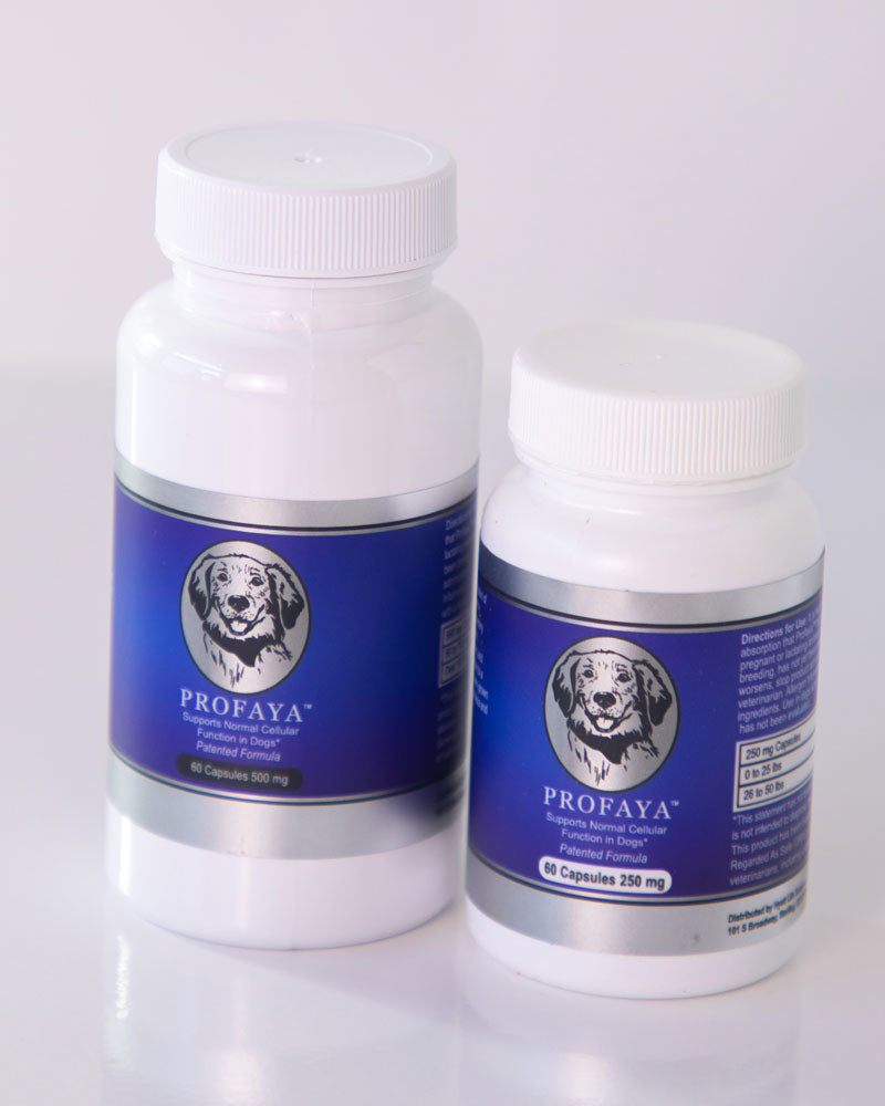 Multiple independent studies, as well as our own research, demonstrate that the ingredients of Profaya™ support normal function of the cellular pathways. These cellular pathways are the natural processes allowing canine cells to properly replicate and perform the vital functions the body depend on to live and thrive. Inefficiency in these natural processes can cause large declines in quality of life. By combating these inefficiencies, Profaya™ is a powerful driver in your quest for good canine health.